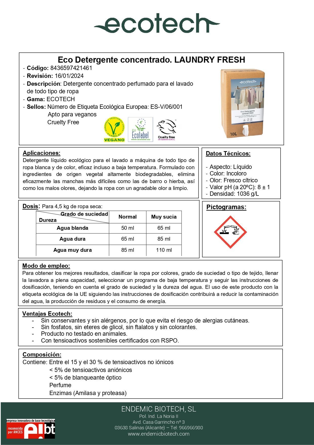 Detergente líquido ecológico para el lavado a máquina de todo tipo de