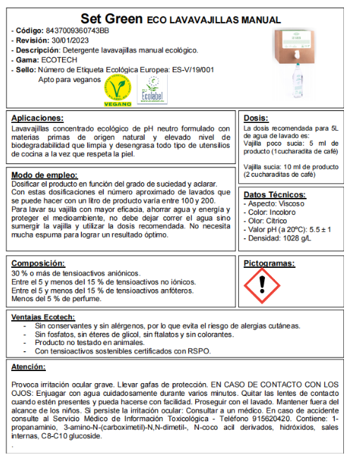 ECOTECH SET GREEN Eco Lavavajillas manual concentrado