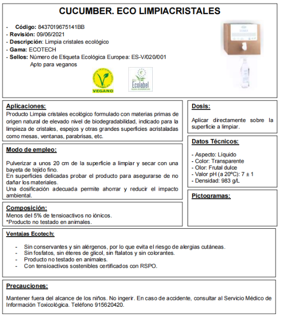 ECOTECH CUCUMBER Eco limpiacristales multiusos