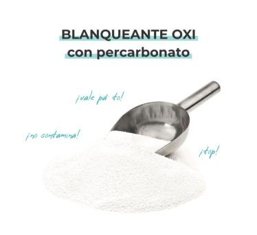 Polvo quitamanchas, desgrasante y blanqueante oxigenado para una limpieza profunda de todo tipo de prendas, blancas y de color, vajillas y superficies lavables de forma natural.