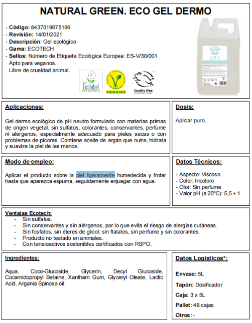 ECOTECH NATURAL GREEN Ecogel dermo