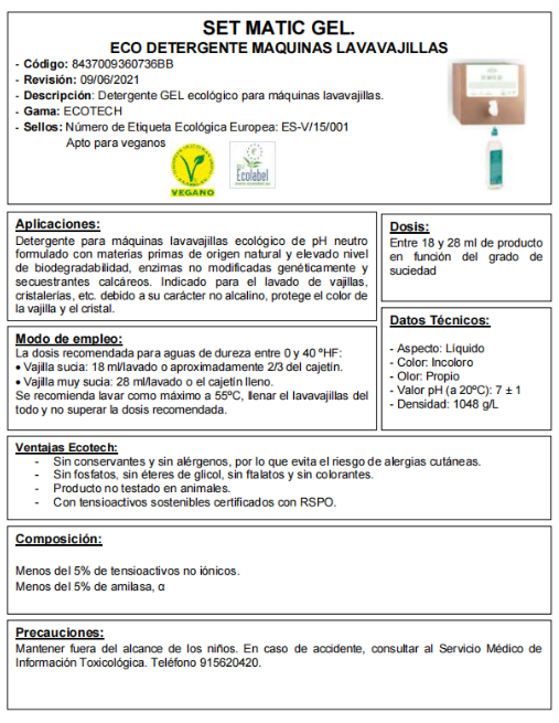 ECOTECH SET MATIC GEL Eco lavavajillas máquina